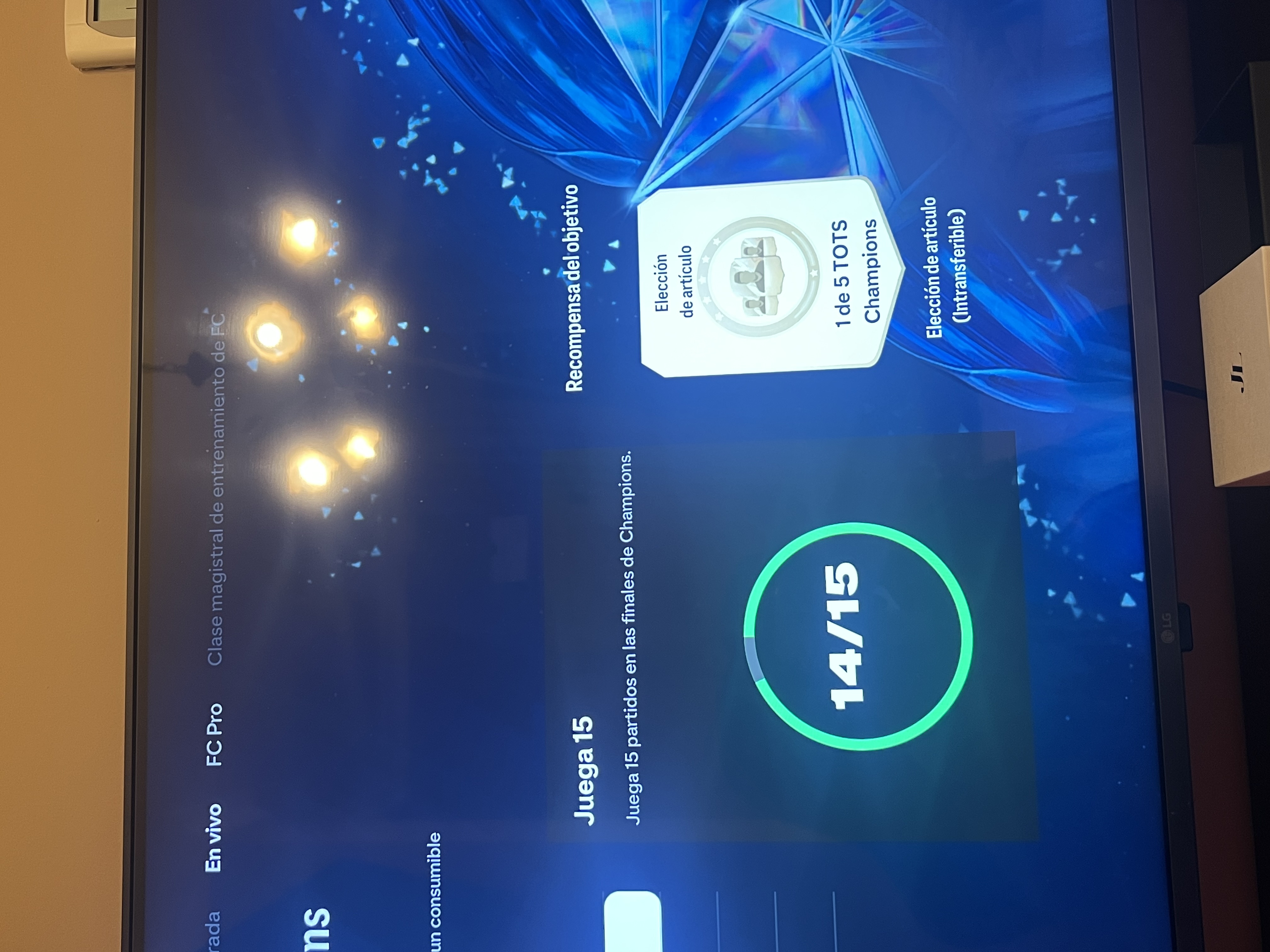 estaba jugando el fut champions anoche y en un partido que perdí pero en el menú de final de partido me dio error de servidores y me echo al menu de fifa, la verdad que me gustaría que me diesen mi objetivo porque tengo hasta clip del partido que me echo el vídeo dura 1 minuto con 22 y no me deja mandarlo pero mando foto del objetivo y vean que me falta solo 1 asique solicito que por favor puedan darme ese objetivo como completado