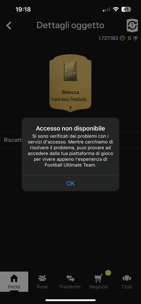 'card.desc.FreeGoldPack' che non posso riscattare perché continuo a ricevere questo errore nello screenshot qui sotto. Questo errore appare su PC WEB companion APP, Mo...