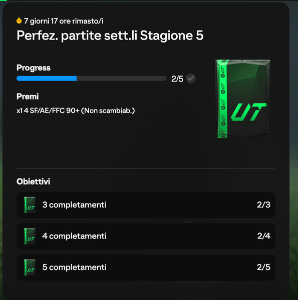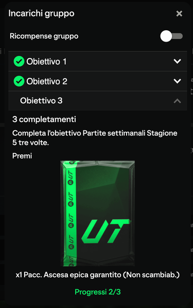 potresti inviarci una foto dell'Obiettivo partite settimanali che richiede di essere completato più volte, per verificare se risulta completato al momento? è possibile che richieda un periodo di attesa prima di poter essere completato una terza volta.