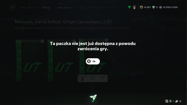 Po zakupie eaplay pro otrzymałem 3 paczki. Żadnej nie mogę otworzyć - komunikat: paczka niedostępna z powodu zwrócenia gry. Rozegrałem wcześniej 10h z abonamentu podstawowego EAPLAY.