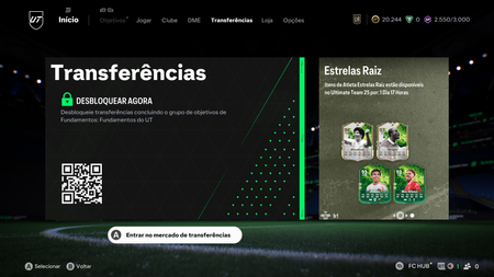Menzinho0506 Clique na aba objetivos e ira encontrar os "objetivos de fundamentos", que servem para mostrar os principais aspetos do UT, uma especie de tutorial, só depois de concluir poderá desbloquear o acesso ao mercado de transferências. Veja mais informação sobre objetivos aqui!