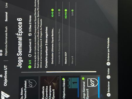 Planeta_20New Spectator11 months agoObjetivo jogo semanal Época 6 Completei os objetivos do jogo semanal época 6: Distribuidor Ultimate e Mestre DCP e não me foi atribuido o pack de aniversário do fut garantido. Show More