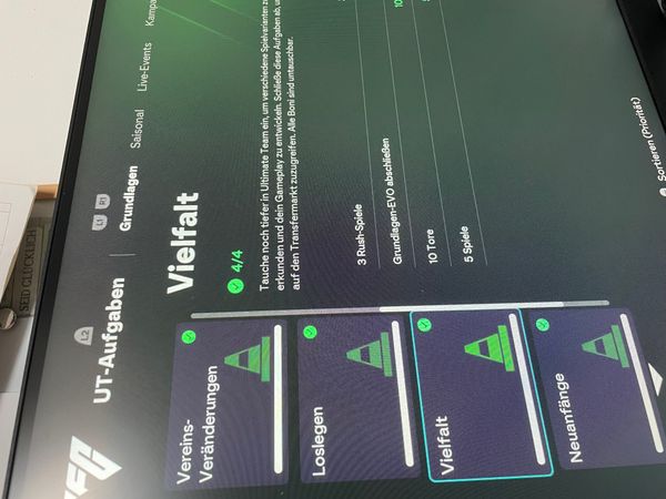 Die letzte Aufgabe beim „Weg zum Pro“ ist es die Aufgabengruppe „Loslegen“ abzuschließen, diese habe ich getan aber wird nicht abgehakt. Es ist besonders ärgerlich da morgen das neue Team of the Week erscheint und sich somit die Wahrscheinlichkeiten für den Playerpick verändern..