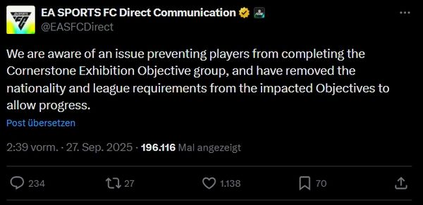 Moin Binos ... EA SPORTS FC Direct Communication hat um 02:39 Uhr auf X folgendes mitgeteilt: