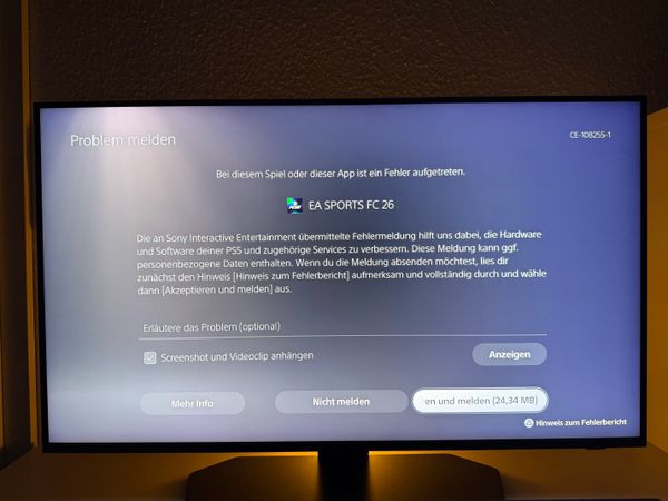 Hier der Fehlercode. Dieser tritt nur bei FC26 auf. Ich habe wie gesagt schon alles versucht, außer die ganze Konsole zurückzusetzen. Gestern hatten wir das Problem nur einmal, danach hat es witziger Weise bei allen folgenden fünf Partien ohne Probleme geklappt...