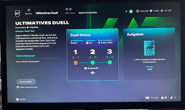Ich habe gerade „Ultimatives Duell“ gespielt. Nach meinem Treffer zum 3:2 wurde die Kamera auf Höhe des gegnerischen Tores, da wo die Spieler zum Jubel standen, eingefroren. Das Spiel lief allerdings weiter und ich durfte schön zusehen wie ich das Spiel verliere und meine Belohnungen natürlich weg waren und außerdem bekomme ich den Hinweis bzgl. Abbruch wegen Inaktivität.