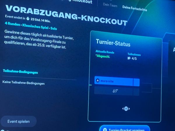Ich habe gestern ein Turnier gewonnen, und ich bin auch im Spielmodi geblockt jedoch hä ich weder Belohnungen für den Sieg noch für das Halbfinale bekommen. Nun kann ich dies erst wieder um 19:00 spielen und habe trotzdem keine rewards.
