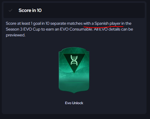 ilkerHekimoglu Tolga_Duver For Score in 10 objective, you have to score with a Spanish player. I hope you are not missing that part.