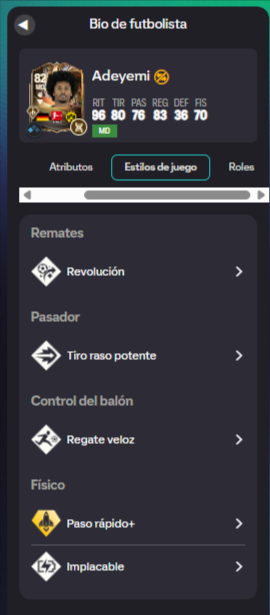 The evolutions should apply correctly to Adeyemi’s card, and the attributes/playstyles should be visible and effective in-game.