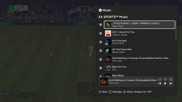 How is this STILL an issue a month later. I literally just got FC26 on PS5 and every single game is screwed because this stupid music thing keeps popping up. Cant play FUT, cant play career or anything. This should be priority number 1 as it has completely ruined the game. Holding the R1 button for longer than a second SHOULD NOT stop your entire gameplay for music that I have turned off.