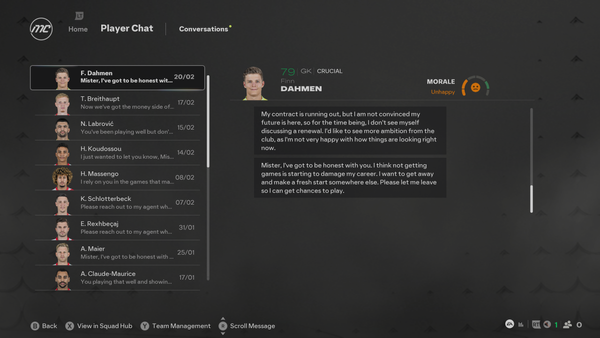 In Career Mode, one of my players keeps saying he’s not getting enough playtime and wants to leave, even though he has started and played in every Bundesliga match so far.