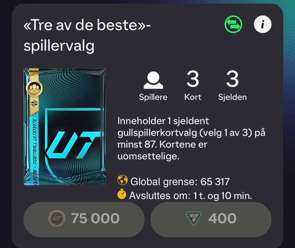 I bought fifa points to open the three of best player pick in the global limits section and it says 1-3 pick of rated 87 or higher. All the players in the pick were below, i got two 80 rateds and one 82 rated card. but the pack states rated 87 or higher .