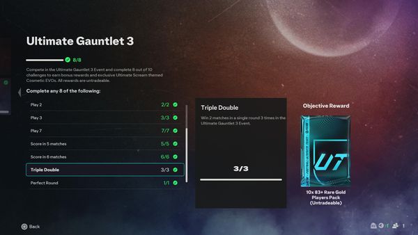 Gauntlet 3 Objective „Triple Double“ incorrectly shown as completed