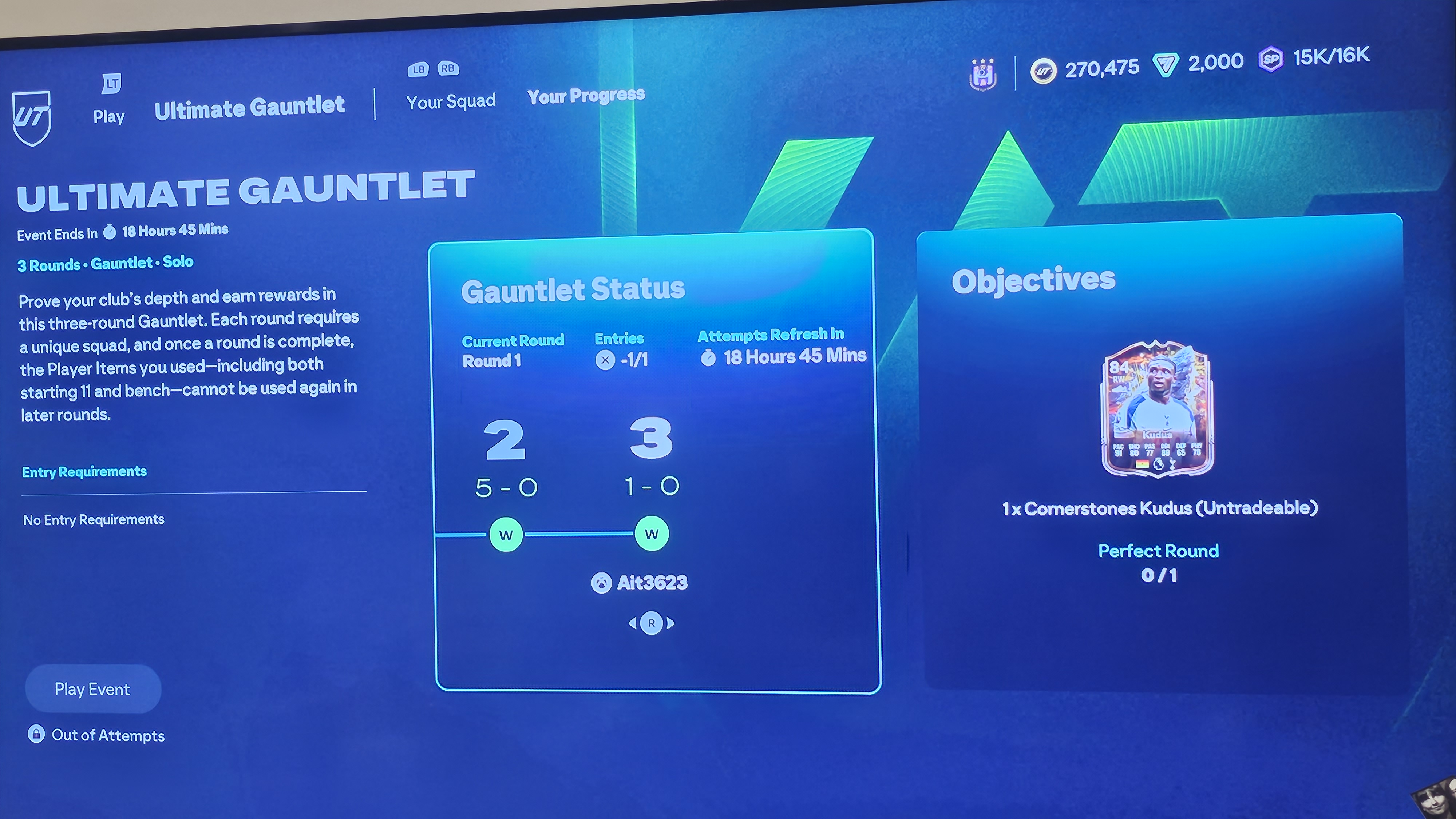 This has locked me out of completing the Gauntlet and has prevented me from competing for the reward (Kudus card), which is very disappointing as I am a Spurs fan and was aiming for this card.