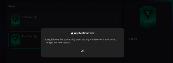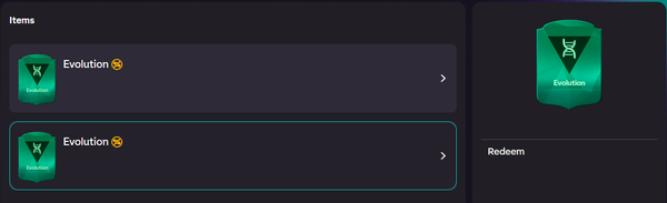 The evolution is in green color,doesnt have any info ,doesnt let you preview it,or redeem it,several players including myself have been dealt with the same issue. It gets stuck in store (unassigned items) that lrevents you from opening packs because it tells you that you have still unassigned items and it it not redeemable.
