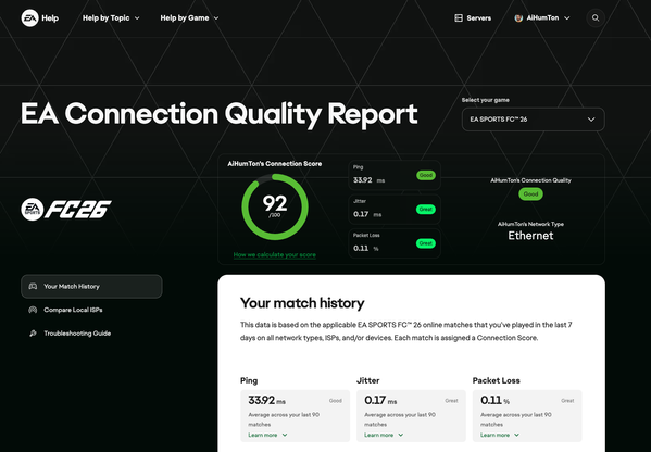 I lost connection with my opponent. I recently bought Fc26 but I can't play online games. I go in and play and then I get disconnected. This is my first time playing this game. I have never encountered this problem in many games. I don't know what is causing it. I have done everything I can, deleting the game, changing my internet connection, but it doesn't work. I go in and play and then I get disconnected every time. It doesn't take more than 30 seconds. It happens every time I play with other players. I still can't play now. I go in and I get disconnected every time. I bought it after the latest update. I don't know if this is related and how to fix it. It really does disconnect every match. You can see from the clip I sent.