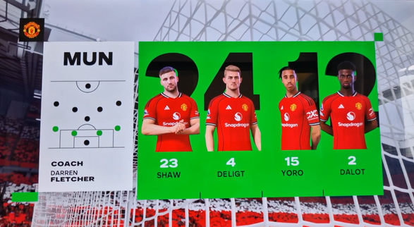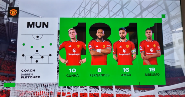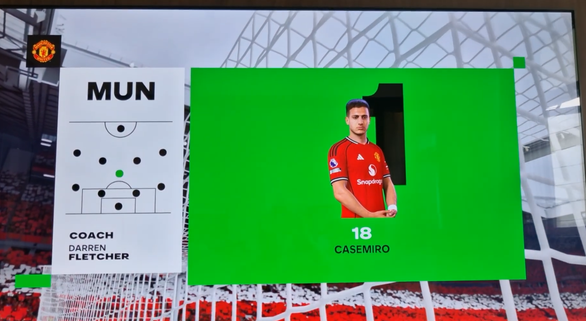 This happens if the formation is changed before starting the match. As the intro cut-scene plays, you can see a lot of the Manchester United players are displayed at the wrong position with the wrong name.