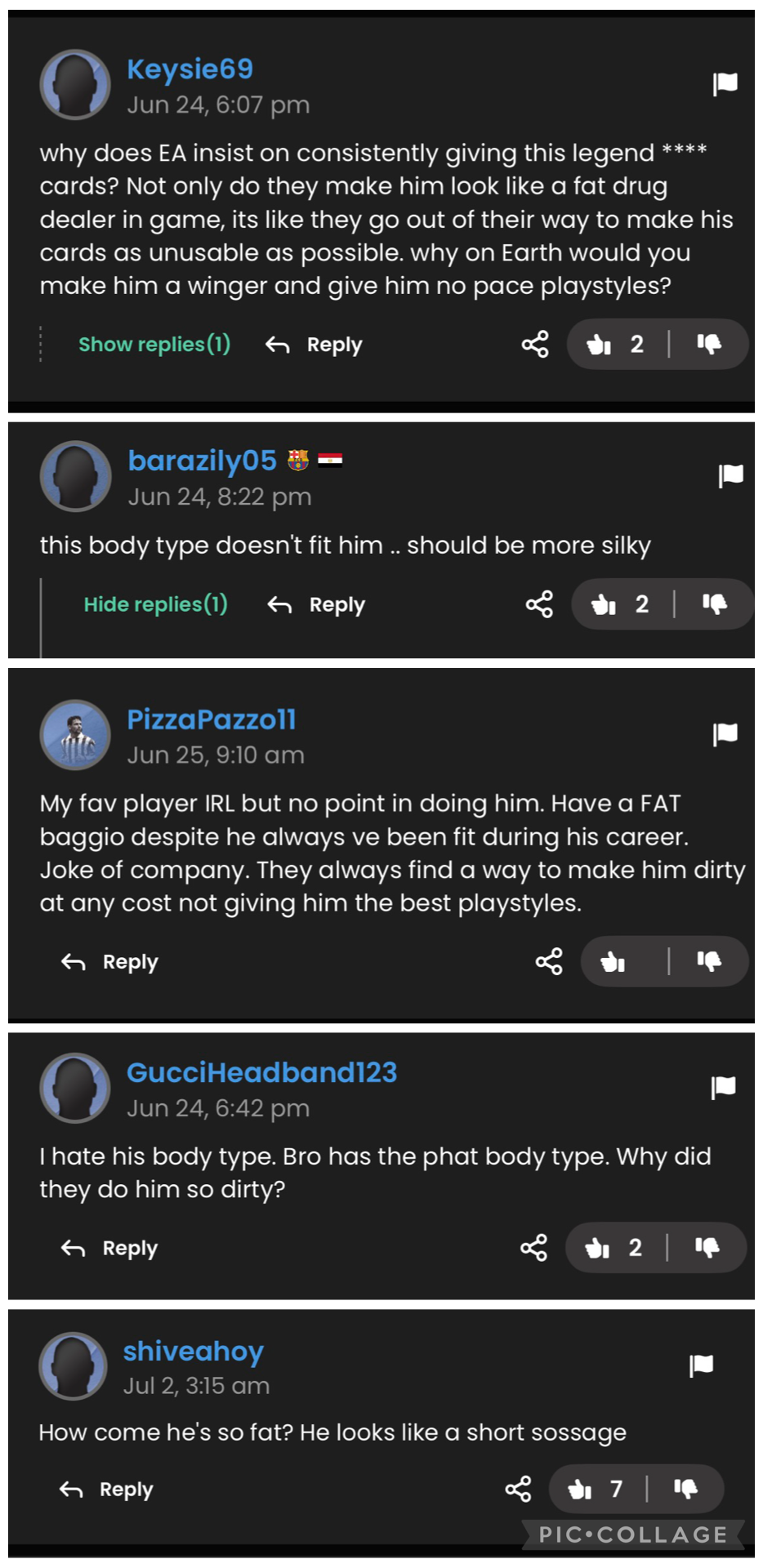 Roberto Baggio’s Icon player model appears to be using an incorrect, overly stocky body type. This does not match his documented physique during his playing career, where he consistently had a lean/slim build.