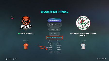 Despite having the setting on to play at player potential, the Youth Tourney matches do not appear to be honoring that once the match starts: Actual gameplay seems to show this is a bug, not...