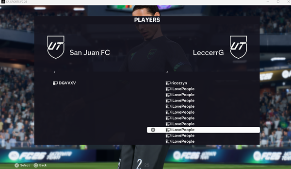 Just had the same, obviously a cheat. other team was full of 70 rated players. Theres not even a report player option or anything. Makes me feel sick to have to quit and I end up getting a DNF penalisation, CHEERS EA!!!