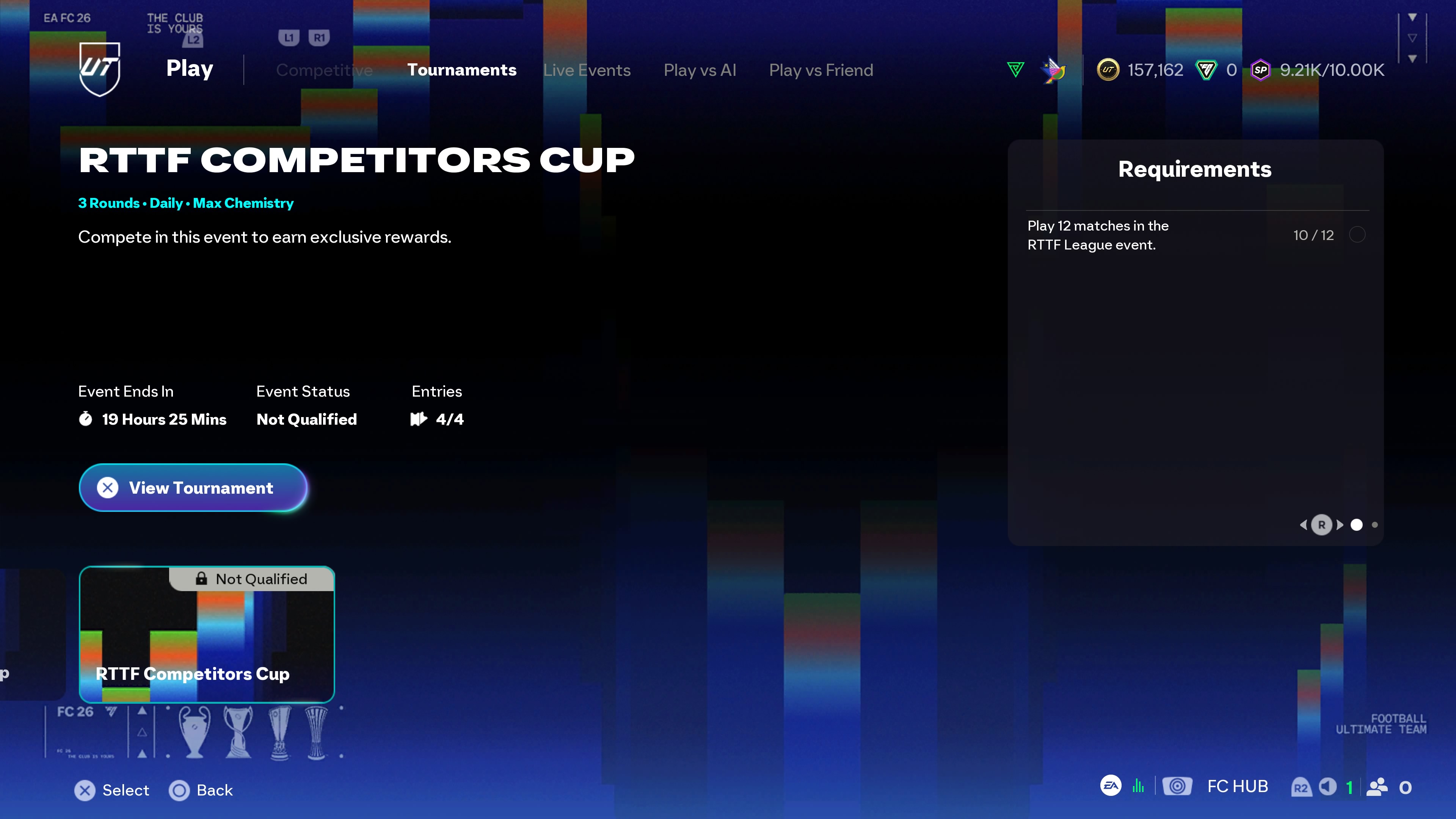 RTTF Competitors Cup - (play 12 RTTF league) - not qualified, it says 10/12 , ok may be becase I got disconnected twice