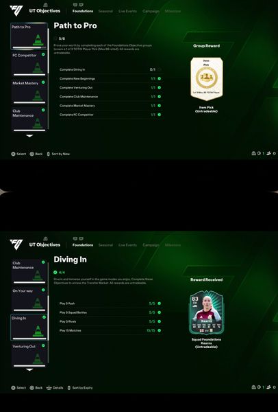 Ive completed all of my path to pro obejective including Diving in, New beggining, Venturing out, Club maintenance, Market mastery & Fc competitor. but the Path to pro objective wont show "Diving in" Objective as complete and wont reward me 86 TOTW player pick.