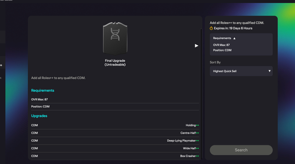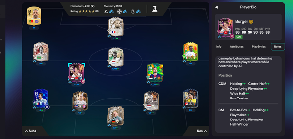 LeoenUliSeasoned Newcomer13 hours agoRoles Evolution for CDM not awarding said rolesI evolved my CDM (Wouter Burger) using the new CDM roles eco which said it would give him box crasher ++, however my card received no role change for box crasher. Platform Webapp/Switch 2