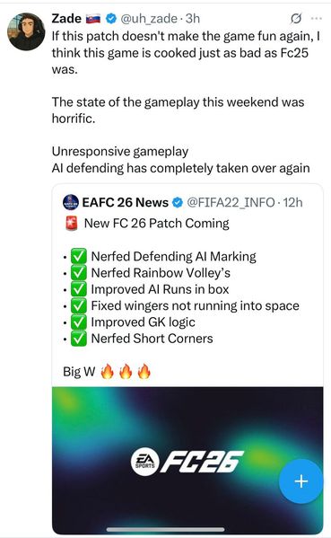 Any danger of providing your customers who paid for the game with a response outlining the issues? We were promised a ‘responsive’ game this year and at the moment it’s even worse than FC25