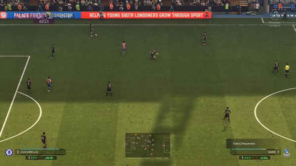 This happens under different match conditions — sunny, cloudy, or night settings — and becomes even more noticeable when comparing directly with other camera presets like Legacy or Tactical, which display much more natural and vibrant grass tones.