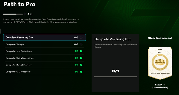 I have fully completed the 'venturing out' objective but it doesn't pop up in the 'Path to pro'. Does anyone know how to fix this? Or EA fix this