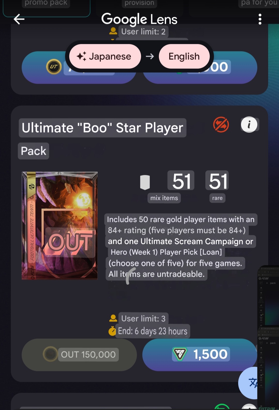 I was told to put this on here by a EA support member which was my report i sent through emails. I opened 3 store Packs when UT Scream dropped with a description that said " Includes 50 rare gold player items with an 84+ rating or higher (five players must be 84+) and one Ultimate Scream Campaign or Hero (Week 1) Player Pick [Loan] (choose one of five) for five games. All items are untradeable." i only received 5 +84 guaranteed from each of these 3 packs and every other player was below the 84+ rating which i paid with using FC Points i brought with real money, I was expecting each pack to give me 84+x 50 rare gold player items as stated and i got aload of players below the rating of 84+, stop closing this case as im just going to keep reopening it and eventually will pursue actual legal action against you stop sending me the email that says "We’ve looked into your case, and you’re not eligible for any more content. This can happen if you didn’t earn your content in time, or you didn’t meet a reward’s requirements", not only was this content im missing, Earned in time it was brought with my real money too I want my 3 84+x50 packs, I noticed from what others told me to that the description got changed awhile after I opened the packs, so something was definitely wrong and you acknowledged it by changing said description so this is a massive false advertisement as i only brought the 3 packs as they said it contained 84+x50 players in each of them, I want the content I Earned and paid for, and im sure alot of other people here too have been wronged and want the content they Earned and paid for too, leave this up and let's see how many other people this has affected in the fc community over the past week, the picture of said description is attached below and also one of it translated for everyone to see