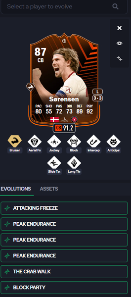 I have evo'ed my UEL Primetime player, Mads Bech Andersen. Before the final performance updates, my version was 87 rated with 90 DEF and 92 PHY. He had PS+ block.