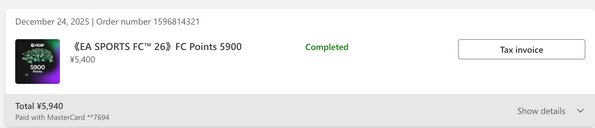 - My main account(xbox ID: peterzhang80)– recent FC Points purchase, unused.