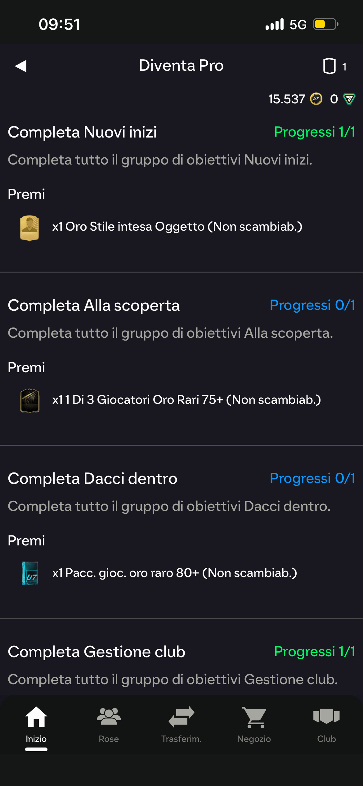 ho pagato 100 euro , non ho trovato assolutamente niente , ho passato giorni a fare gli obiettivi e manco quelli funzionano, ho finito il gruppo di diventa pro ma non mi fa riscattare niente. Mi serviva solo piu dacci dentro per sbloccarlo, lo ho completato ho preso i premi di dacci dentro, ma dell'altra nessuna ombra...non mi vuole dare ciò che mi spetta , ogni anno sempre peggio