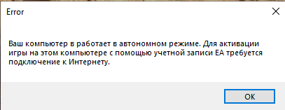 ИНтернет есть по факту. ИГра загрузилась по нему, но активация не происходит. На других компьютерах все хорошо, когда по данному профилю игру устанавливаю