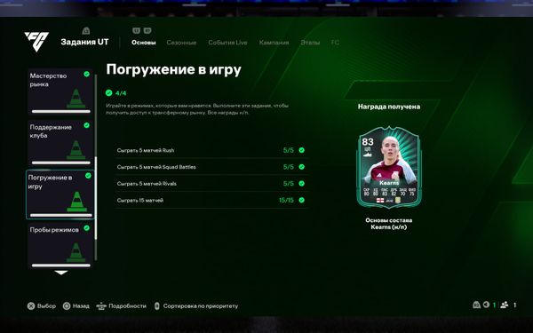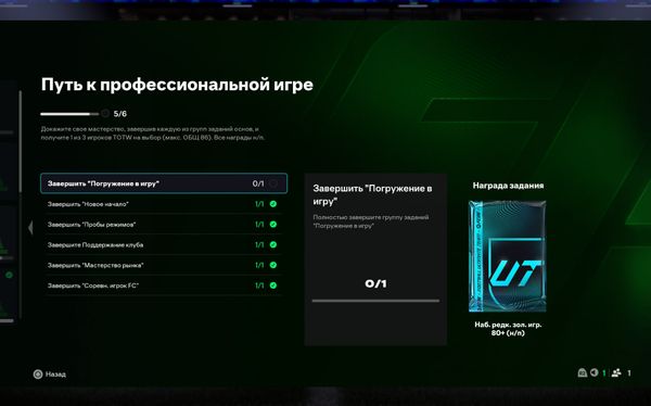Я выполнил задание «Погружение в игру» (все 4/4 задачи закрыты, награда получена). Однако в группе «Путь к профессиональной игре» прогресс отображается как 5/6, и задание «Погружение в игру» не считается выполненным.