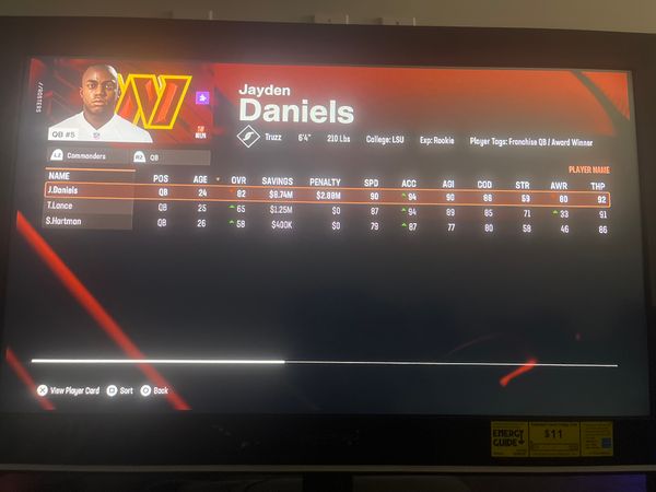 I edited jayden daniels’ equipment, backed out and the game literally deletes most of his attributes/info and makes others glitch all the way out. Please look at his age and awareness. It also reset his face scan on the roster page but when you pull up his player card he still has his face scan. There’s no way I can make his age 0 and his awareness 254. This is beyond acceptable. I understand MUT is the company’s cash cow but the incompetence/neglect of franchise mode and h2h is completely inexcusable at this point! I have included pictures below.
