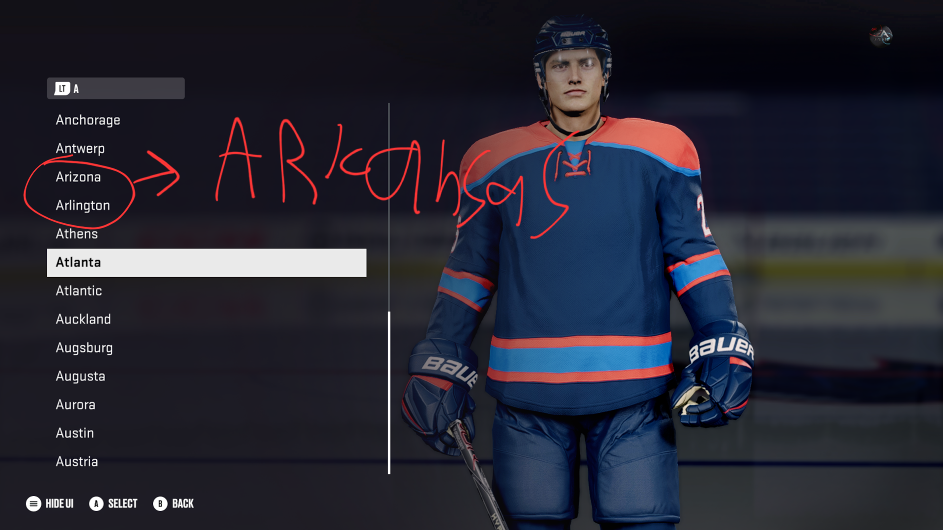 I'm trying to create college teams of what the game let's me and I was gonna create the Arakasas Razorbacks. But the City/State/Province section is missing Arkansas as one of the options. And yet the game has all the other 49 states.