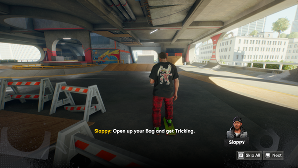 It is possible I was skating/bailing off the ramp and resetting while the intro dialogue was happening and in between that and the first attempt. Pressing A or holding Y to "Skip All" would play the sounds and visually fill up but nothing would happen, music kept playing and Slappy's dialogue was up the entire time.