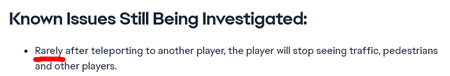 Calling this a rare issue is a joke. I can't think of a single session where my teammates, NPCs, cars, or other skaters haven't disappeared for either me or my partner. We log in every day, most ...