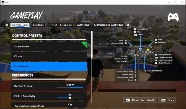 I'm using a keyboard and mouse to play skate. but there's not keyboard key bound to controller Y for me to play! I can't even get past this point in the tutorial. I used VJoy to enter the game, and then disabled it to use my keyboard, which was working up until this point. There are keys for all the other buttons, just not this one.