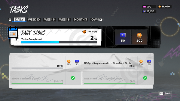 I was able to complete the daily tasks today. It was still bugged but it registered my tricks after I restarted the game. Unfortunately this won't work for the weekly tasks though: