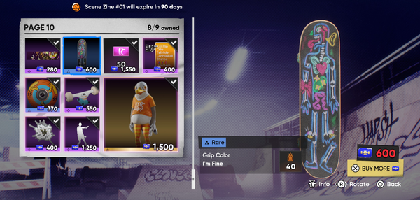 The grip tape color from the Skate pass 1 - Page 10 is not in my collection anymore ! I'm asked to buy it again (and yes, I'm sure I had it because I do have the Livingstone costume).