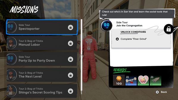 - Missions: I'm currently stuck - Tour 1: Skater Eyes - Ripping for Rewards - Step 1/5