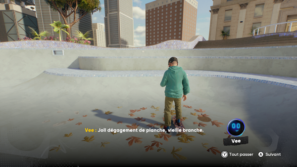 The game randomly softlocks at the end of challenges after exiting the replay too quickly. Vee's text remains displayed, along with the "Skip All" and "Next" options, but the Y and A keys do nothing except display the circle around Y. It's impossible to exit this mode except by quitting the game using Alt+F4.