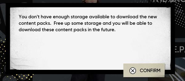 When I logged on today I got this message (I also got it yesterday but thought nothing of it), but I have >200GB of free space and its ~8.66GB game. When I "Check for Update" it says latest version.