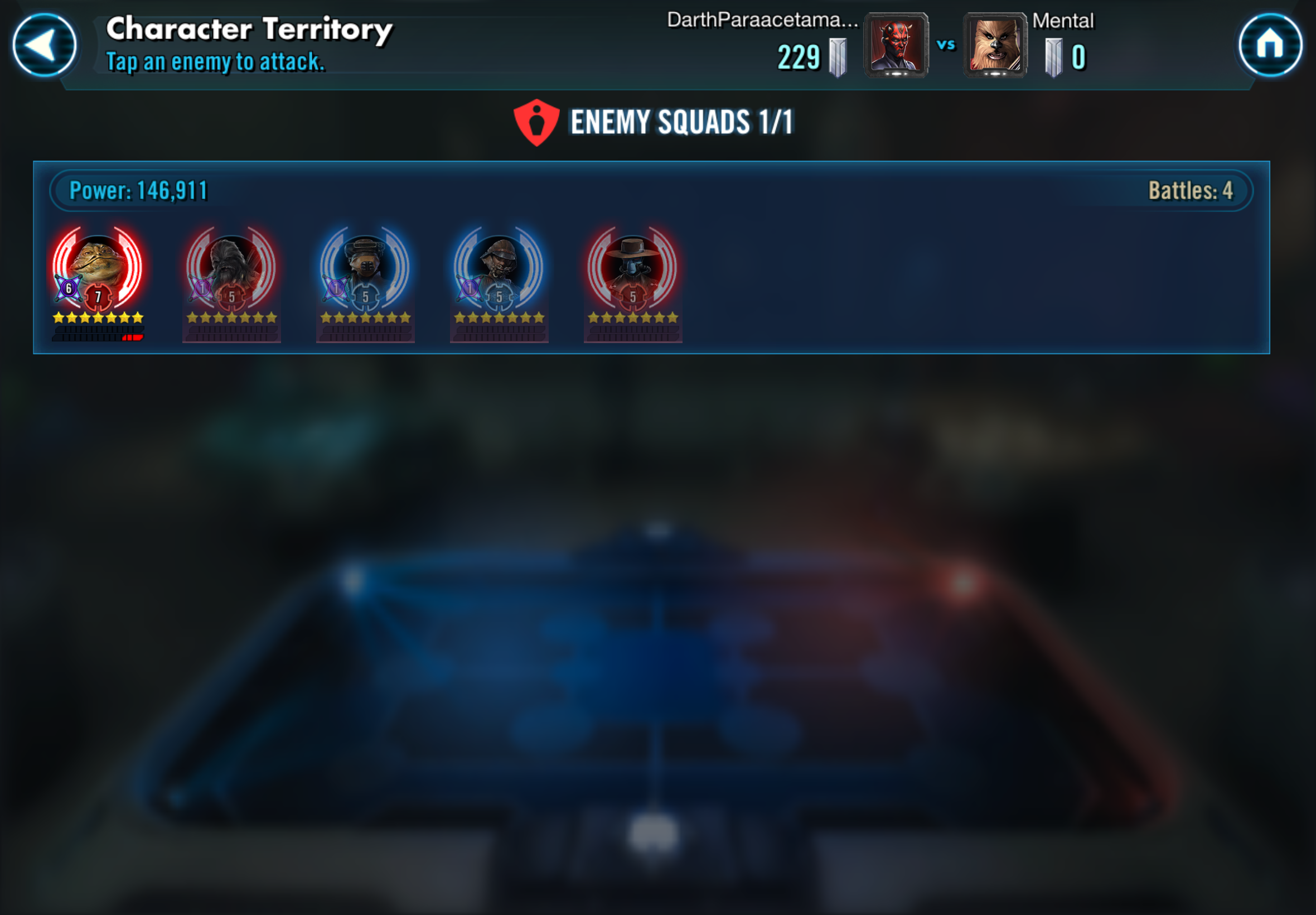 Lost my GA because after bringing opponent’s Jabba to red and doing submit to kill him with the next squad, Jabba starts the next round in nearly full health despite shown in red prior to the fight as if nothing happened. Reproduced it several times pressing submit, and every time at the beginning of a new fight Jabba’s health is restored despite shown as nearly dead in the menu before it, sample screenshots are attached: