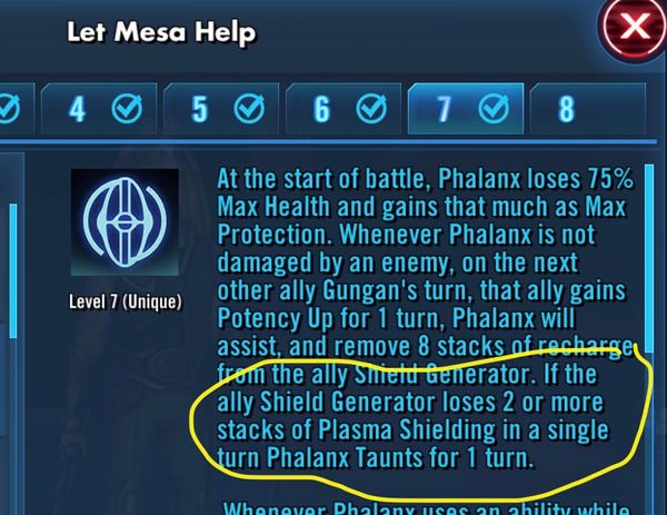 What I think is I watched unlock jar jar vids where the generator took to hits in a row and phalanx tanked. Now he doesn't.