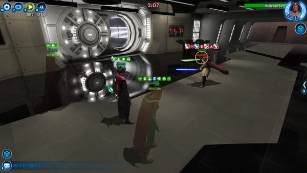 "While Kelleran Beq has Protection, he has 100% counter chance, a 50% chance to attack again whenever he uses a basic ability, and can't drop below 100% Health."