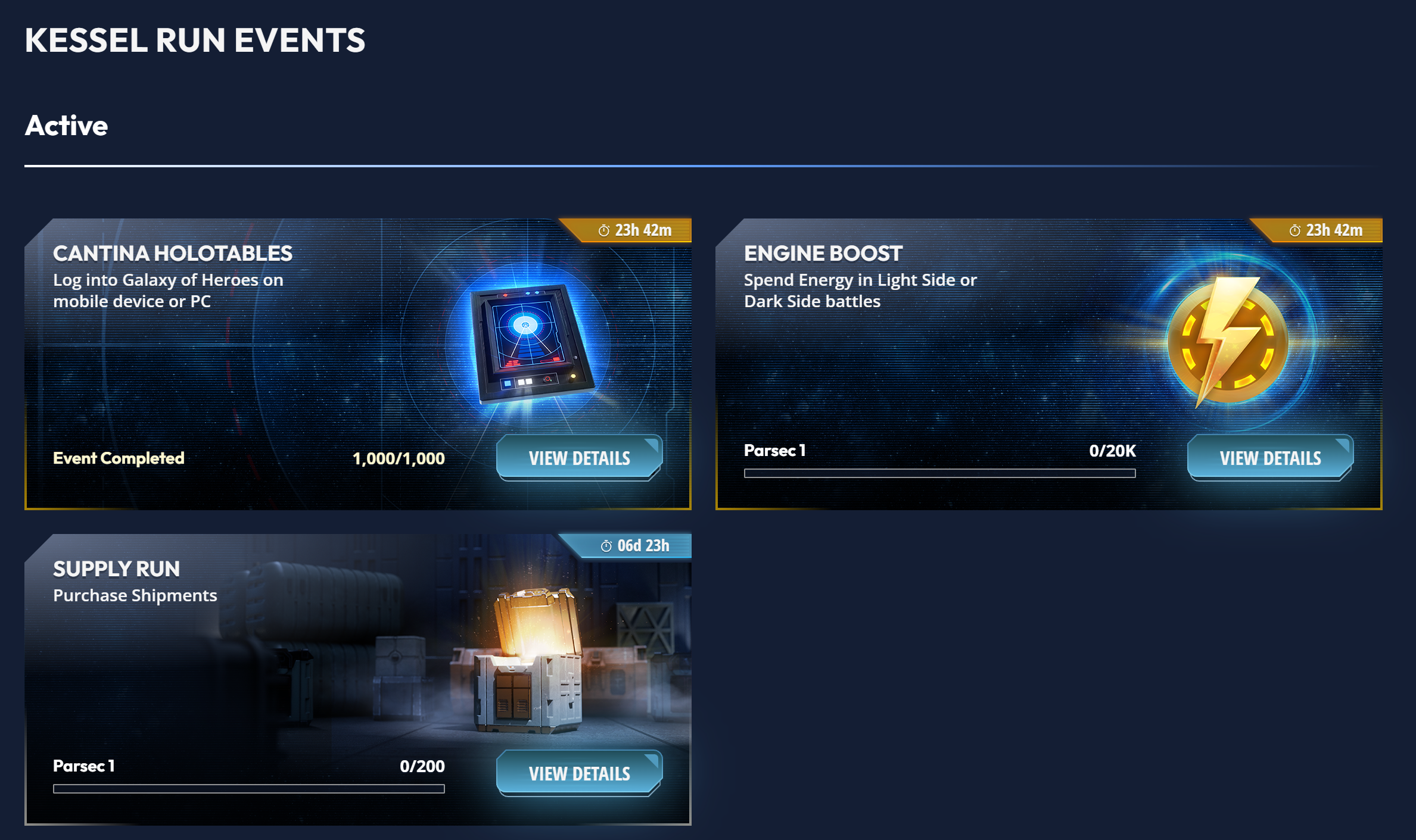 After the previous kessel run event ended today (2/12/2026) a new one did not immediately start; this has caused a loss of coaxium from the dailies and purchases.